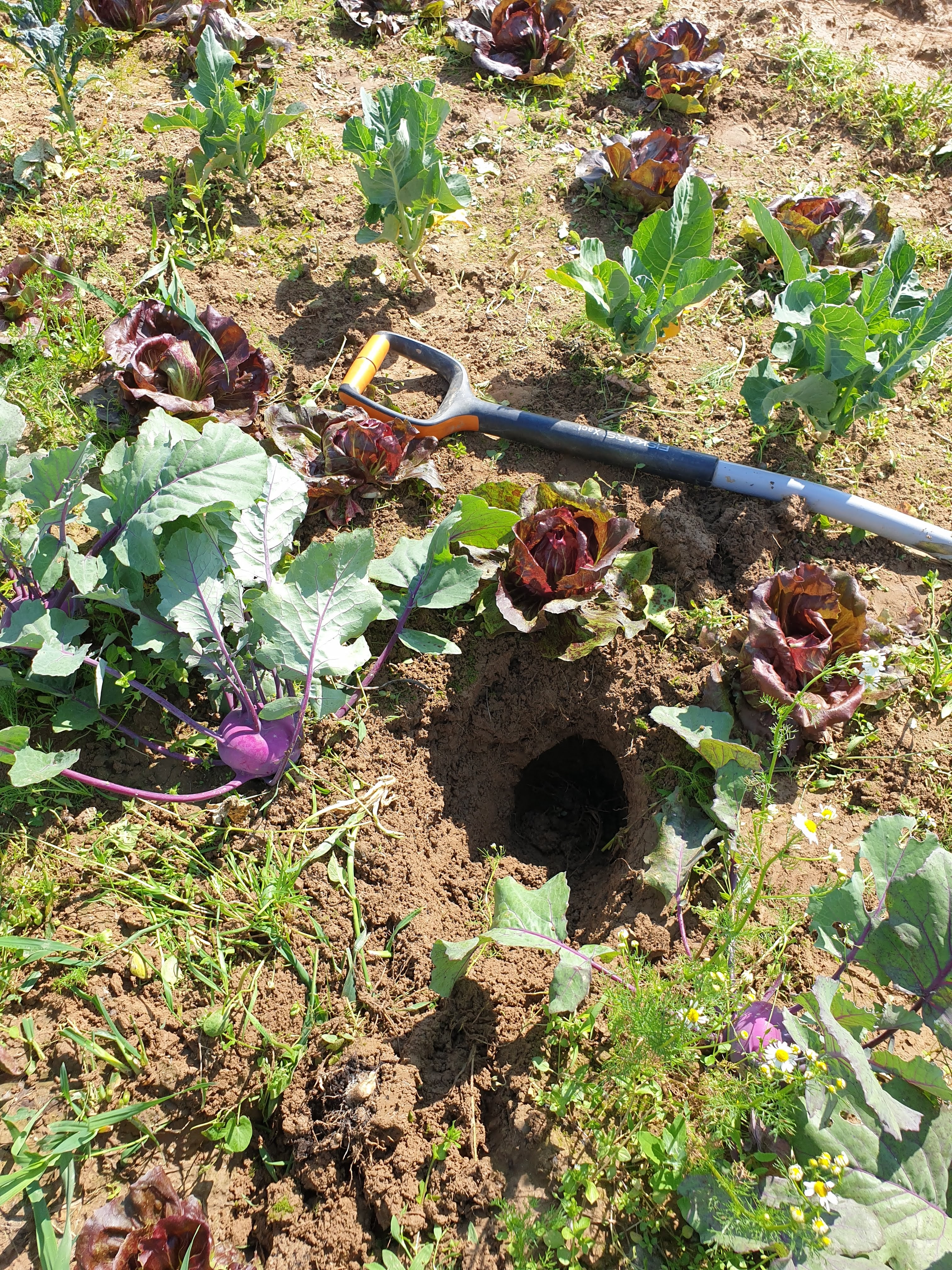 今日は一生懸命雑草取りに集中。そしたら畑のど真ん中にウサギの巣穴を発見!