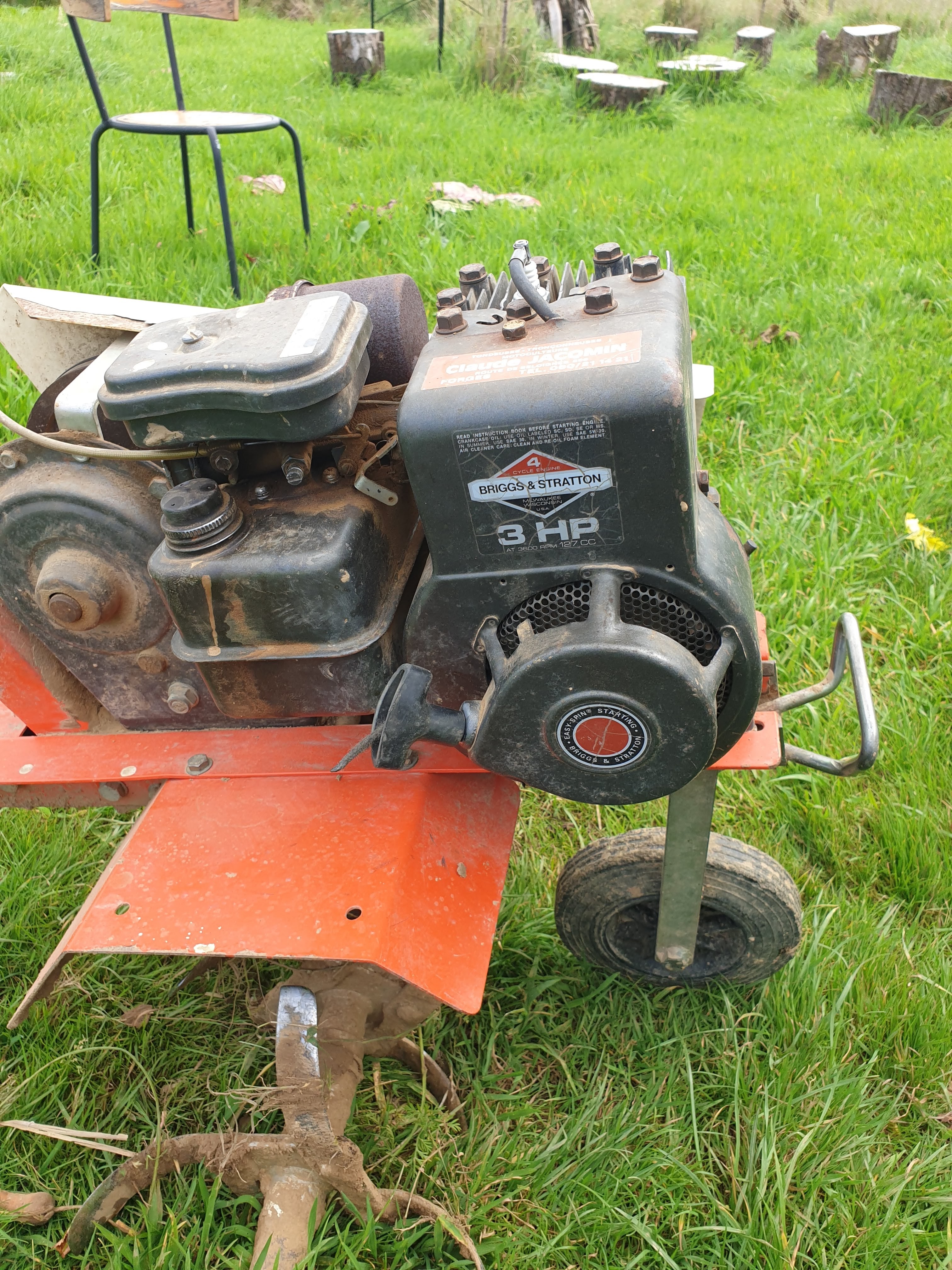 この耕運機は知り合いに譲ってもらったかなりの年代物です。多分50年は経ってるかと思います。それでもうちの畑では大活躍、この小さい機体で畑を耕してくれます。