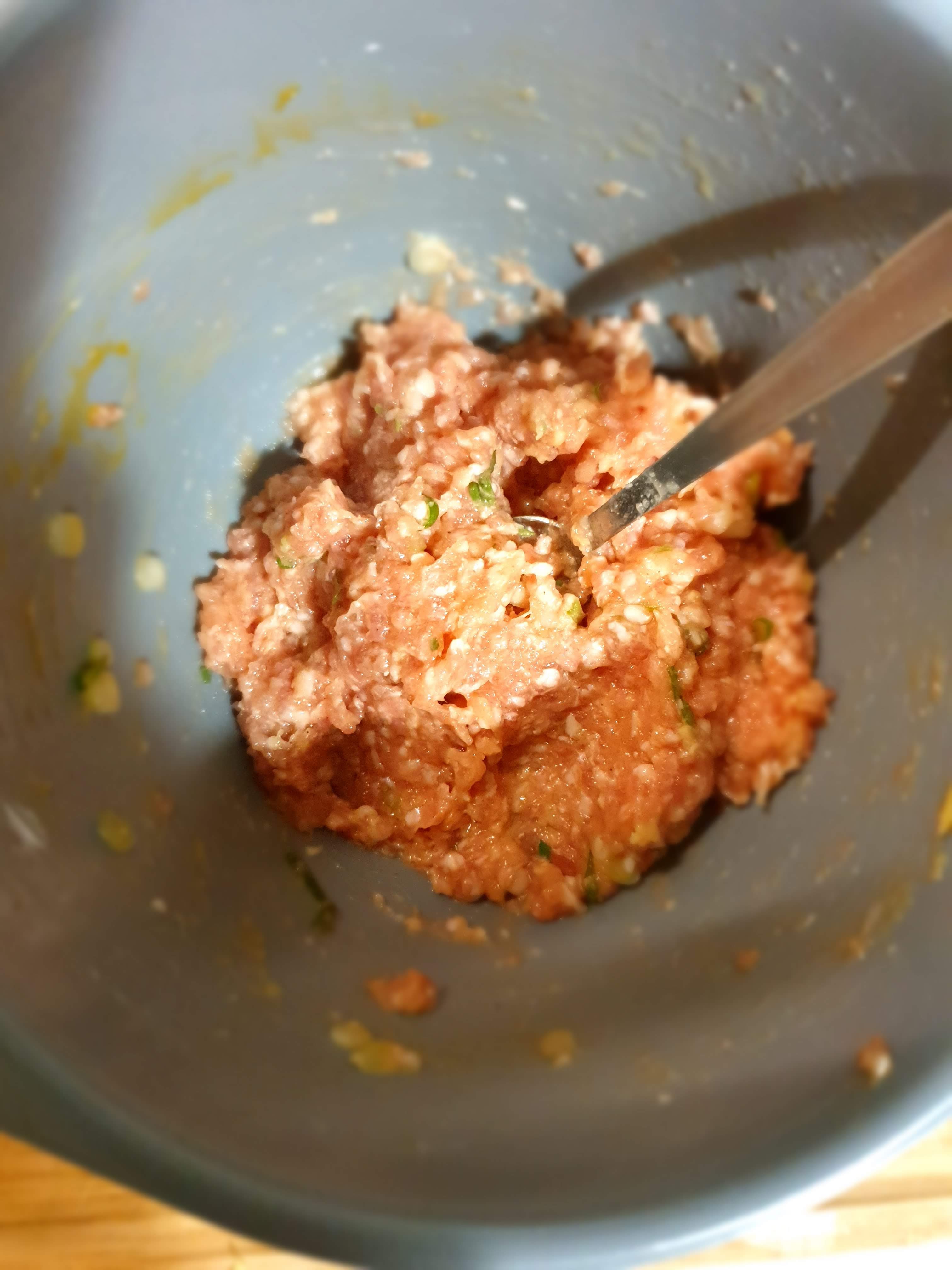 - Ondertussen de gehaktbal klaarmaken zoals op de foto.