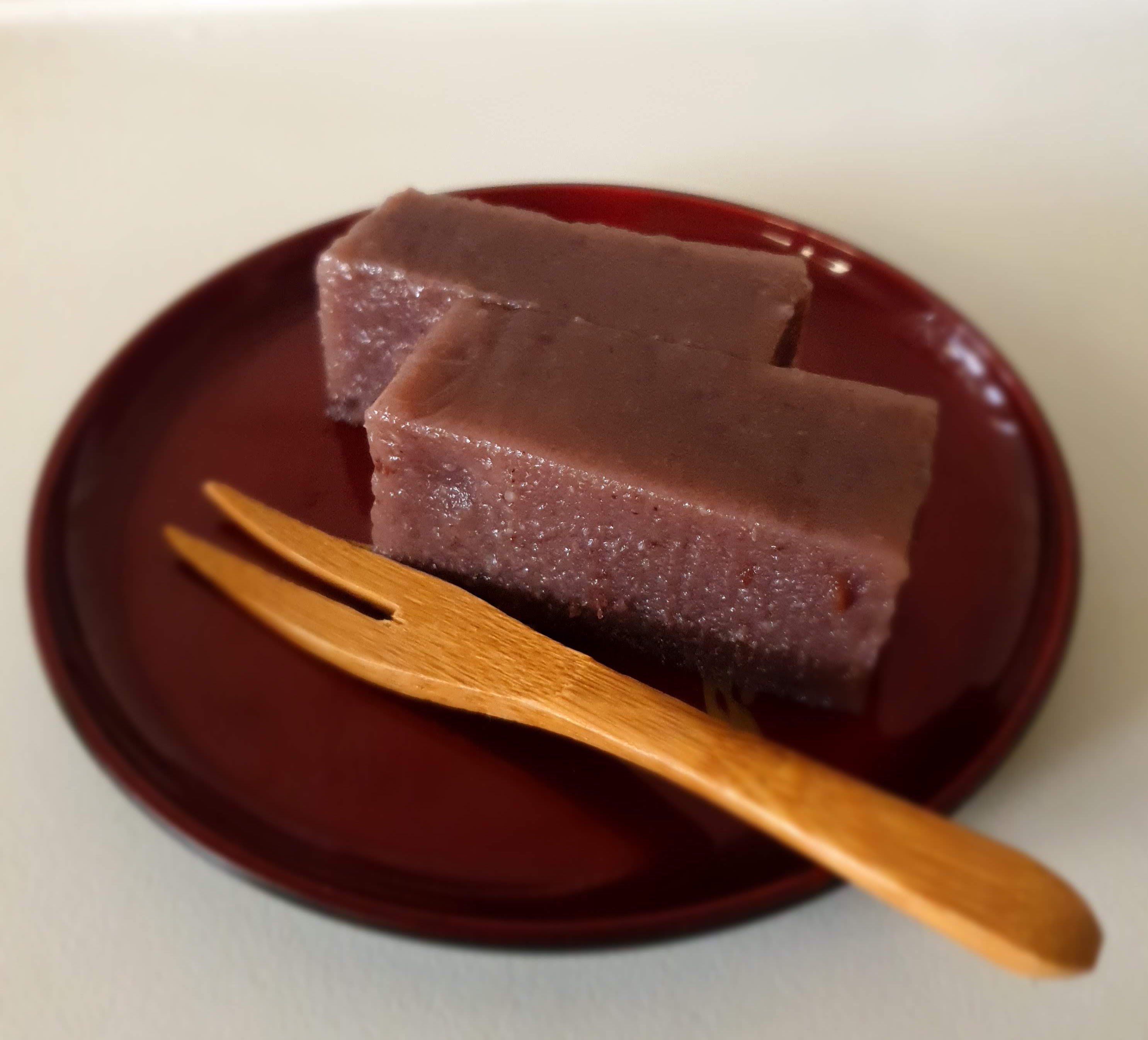 羊羹の予定が小豆の水分が多すぎたので水羊羹になってしまいましたが、心が癒される手作りなんちゃって和菓子ができました。