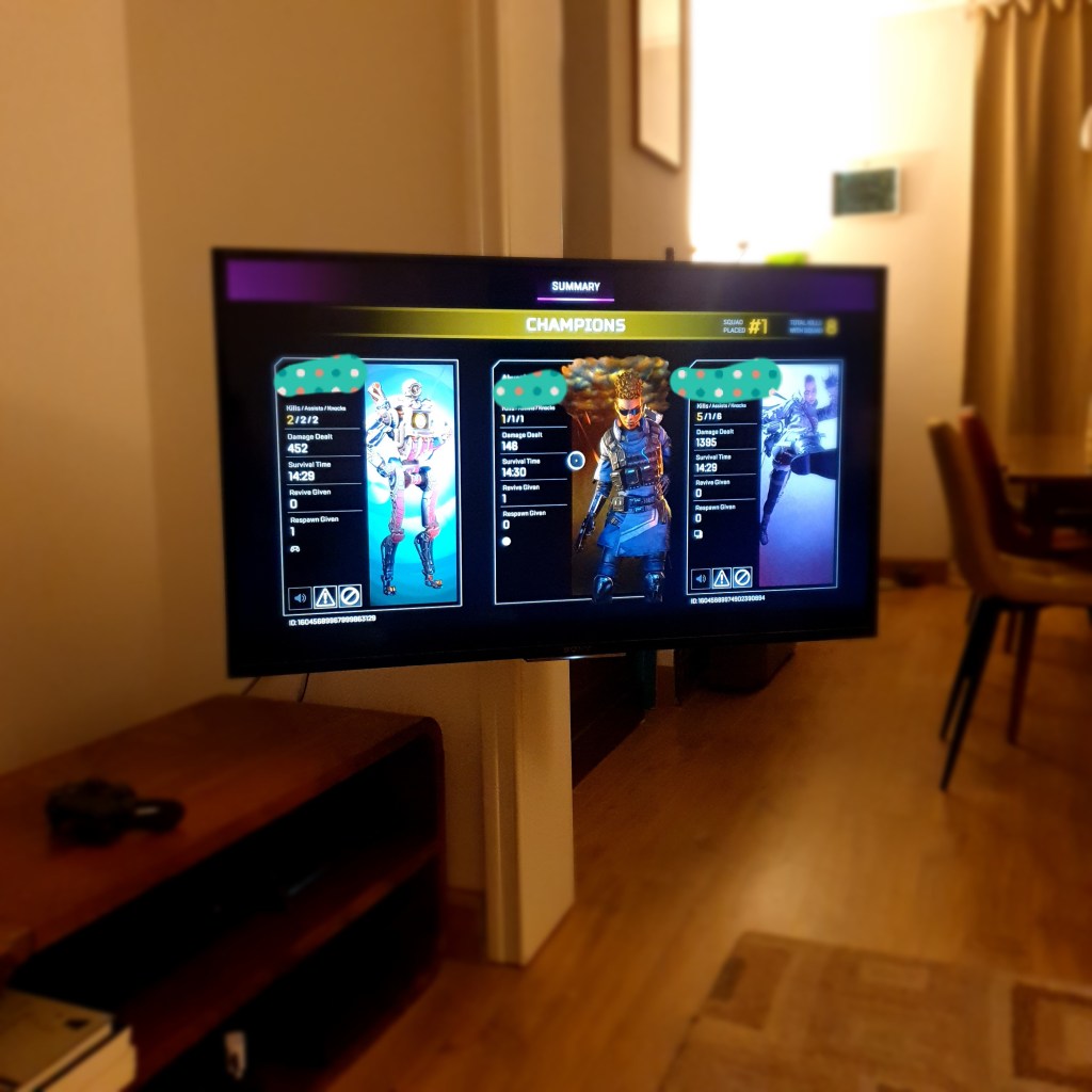 今はエーペックスレジェンドですぐにキルされてしまうので、何とかもう少し頑張れる自分を想像して子供達とパーティー組んで教えて貰ってます。エーペックスボタンが多すぎて難しすぎ。敵が前に来た瞬間に撃とうとしたらパンチでる( ;∀;)