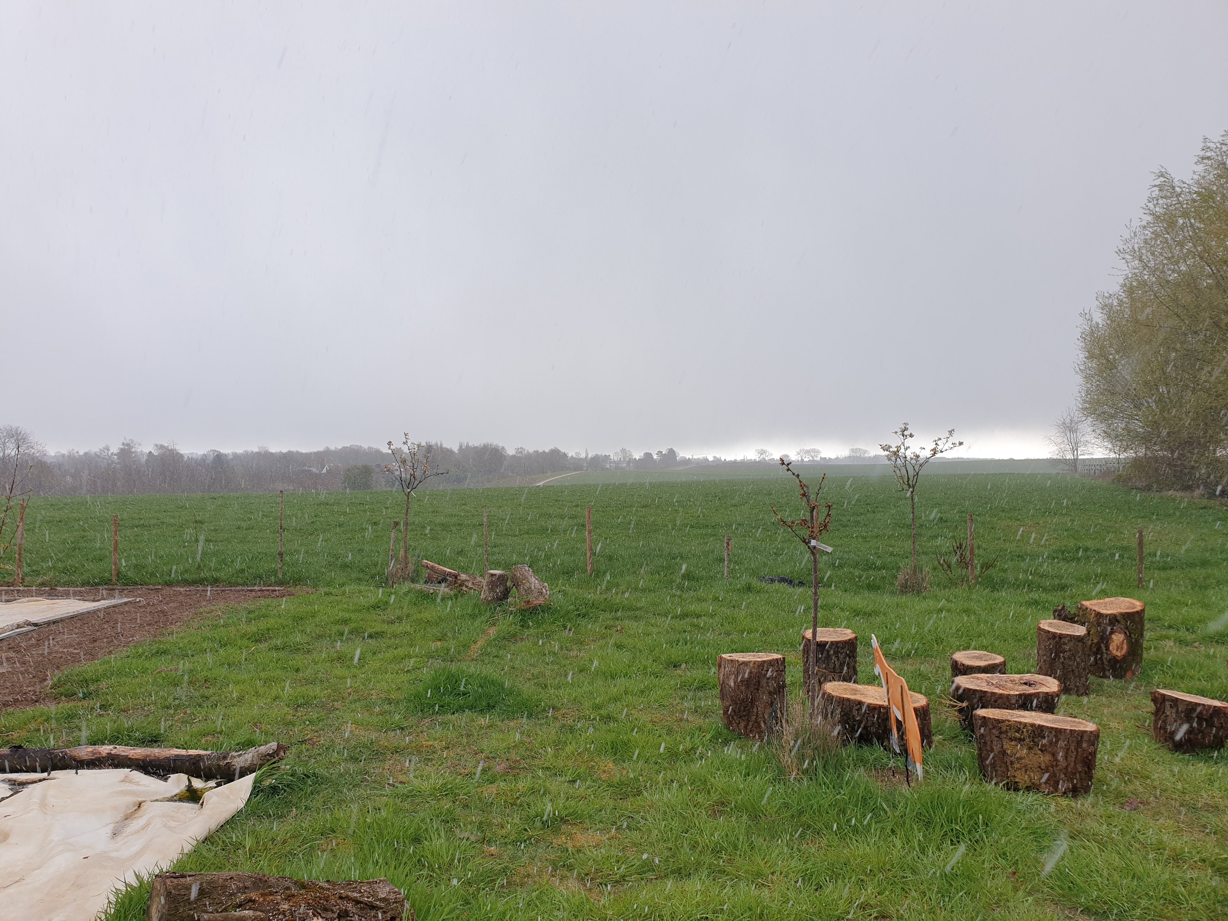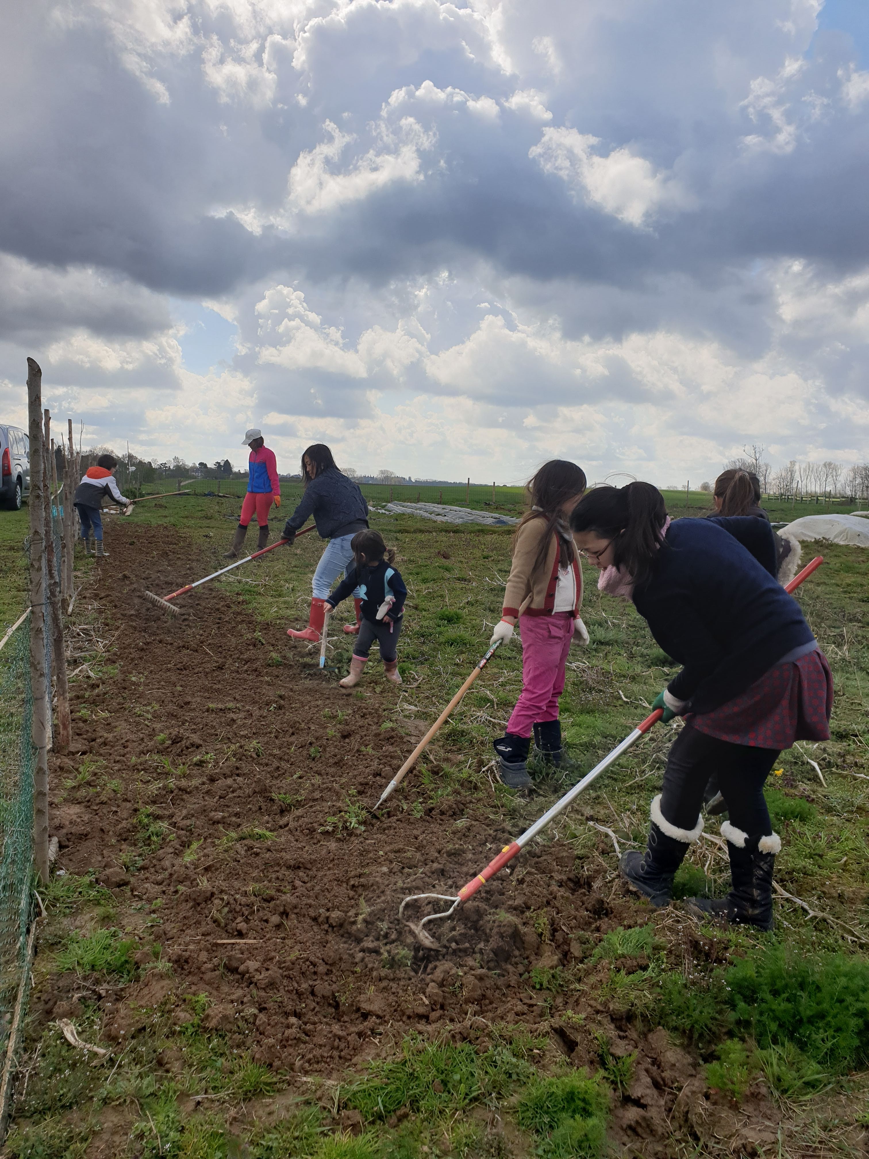 長かった3週間の春休みも今日で終わり。今週の始めは変な天気で始まりました。雨が降ったり晴れ間が見えたり雪が降ったり。そんな天候の中、友達と子供達が畑の手伝いに来てくれました。
